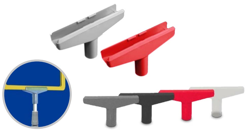 Fabriqué intégralement en plastique, il convient également de l’utiliser avec des poteaux télescopiques d’un diamètre de 10 mm.