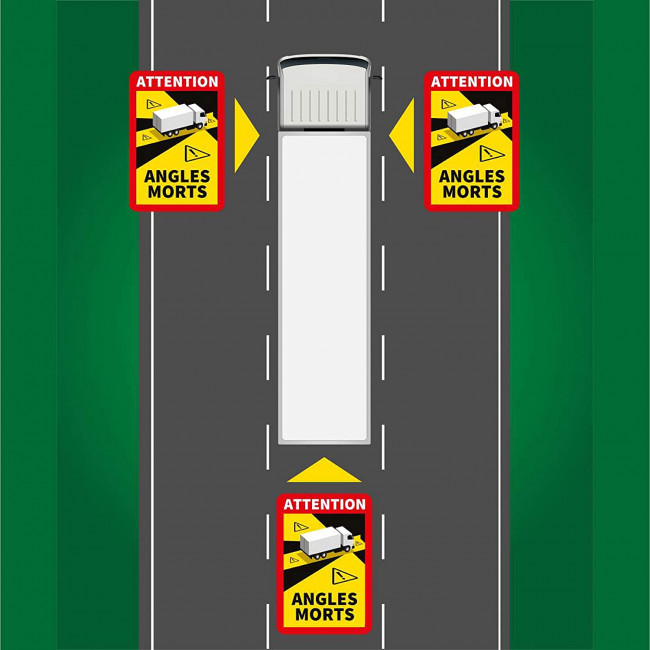 Avertissements pour angles morts - livrés en 3 stickers de 17 x 25 cm.