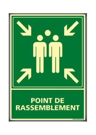 | Réf. TC :11141075 | Panneau de signalisation industrielle | Secours photoluminescent | Point de rassemblement | 210 x 150 x 1,5 | -