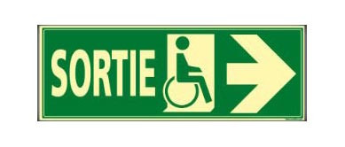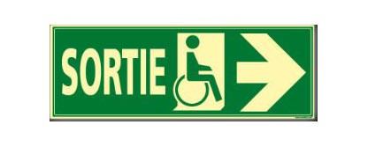 | Réf. TC :90750771 | Panneau de signalisation industrielle | Issue de Secours photoluminescent | Sortie handicapés | 210 x 75 x 1,5 | -
