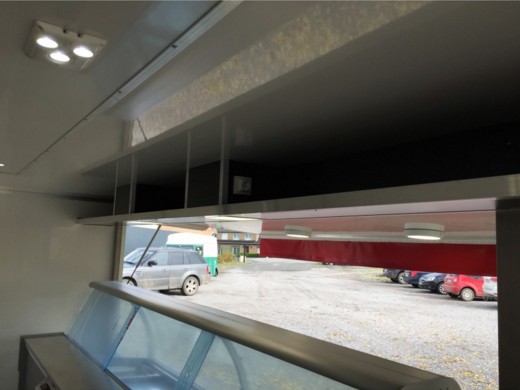 alimentant les équipements, les prises (plusieurs répartie dans la remorque + sur plan de travail) et l'éclairage intérieur et sur hayon (LED)