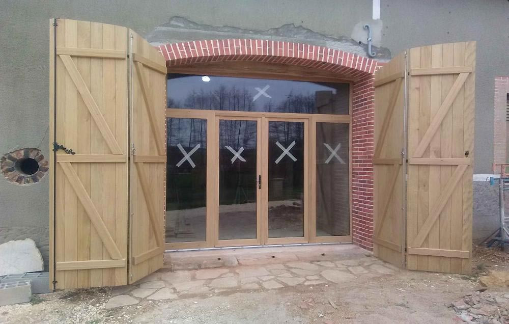 - Porte à lames - 2 vantaux en chêne + bardage + charpente