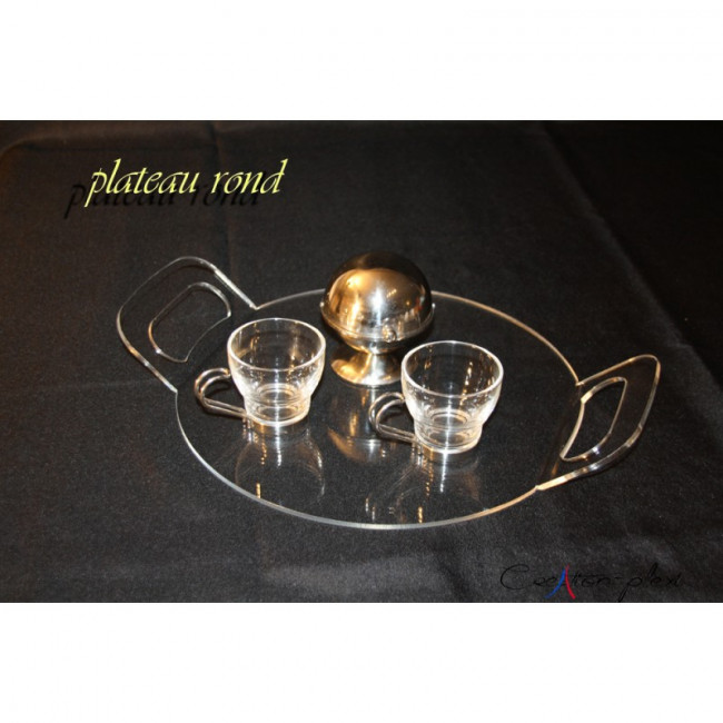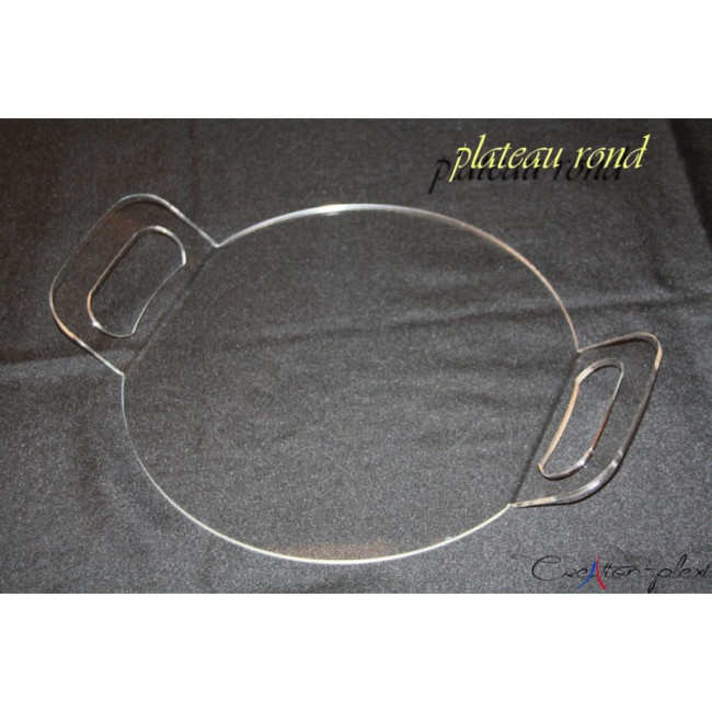C'est un plateau rond avec deux anses conçu en plexiglas.