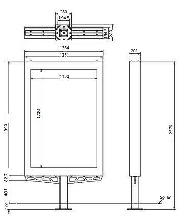 Dimensions affiche fixe (mm)