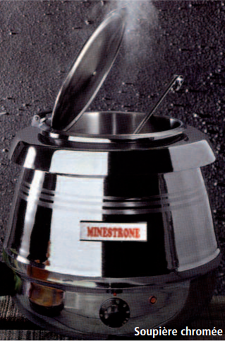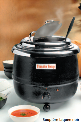 D’une capacité de 10 L, cette marmite à soupe dispose d'une carrosserie laquée noir ou chromé (selon modèle).