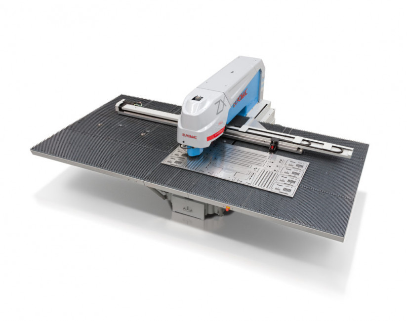 La machine forme, cintre et marque des tôles à la vitesse de 300 kN, d'une épaisseur de 0.6 à 6 mm.