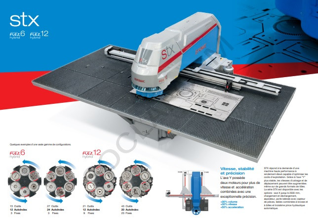 La poinçonneuse extrêmement performante avec un haut rendement et une optimisation des coûts de gestion, se présente sous deux types différents : le stx flex 6 et le stx flex 12.