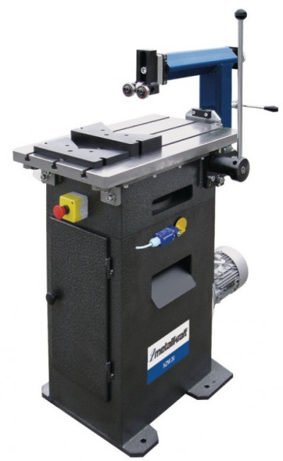L'avance de la table se fait manuellement à l'aide d'un grand levier manuel, offrant une manipulation simple et ergonomique.