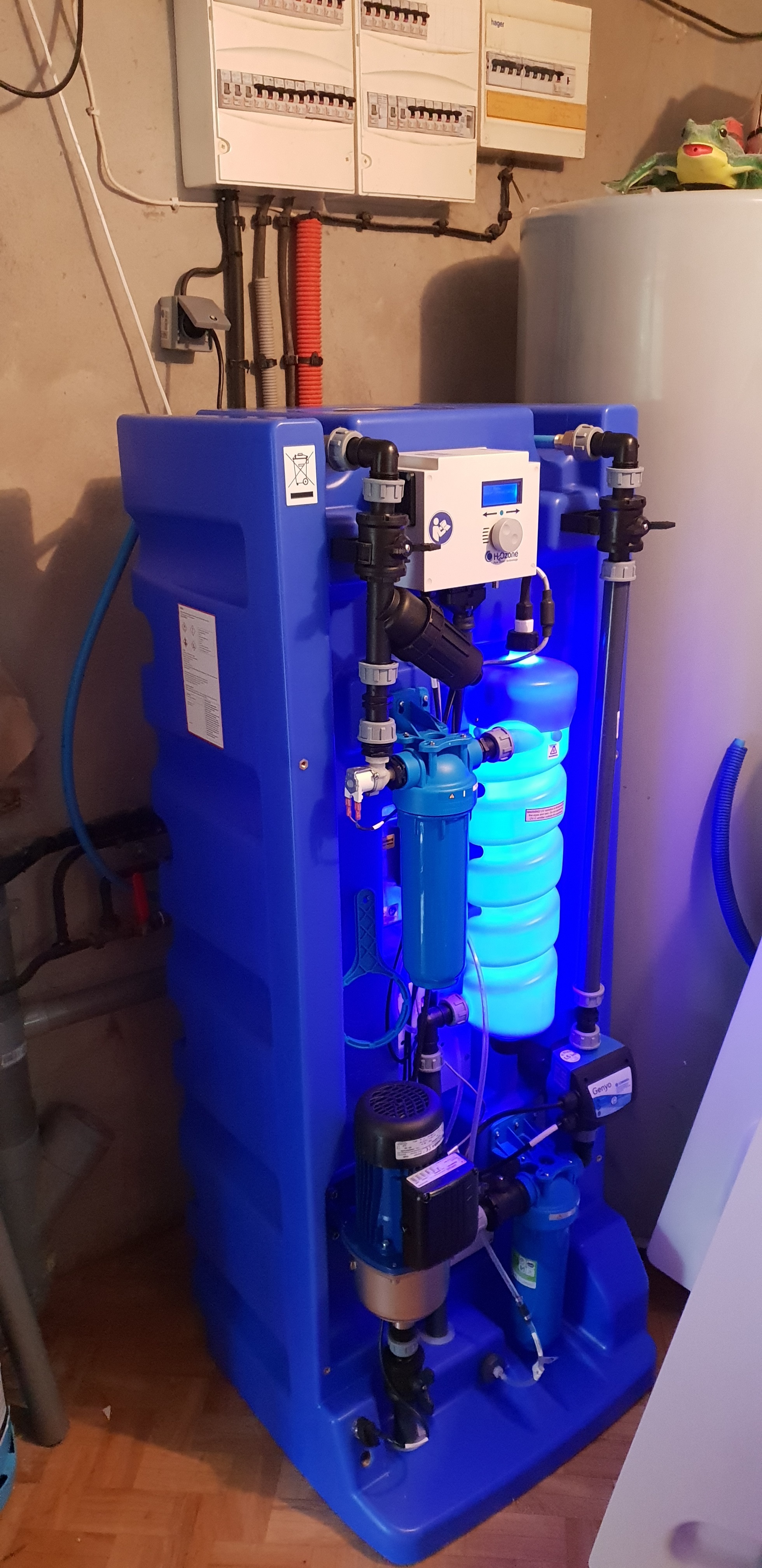 comprenant filtration neutralite, charbon actif, filtre uV et si possible prefiltre avec filtre à sable
