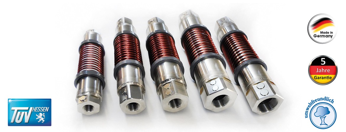 Derrière la spirale résulte de la turbulence de l'eau, une cavité au sommet. Là, une aspiration au centre du tube, donc une force implosive ou centripète, qui élimine en douceur les dépôts de calcaire et de rouille des tuyaux suivants. Tous ces effets ont été prouvés par des tests. En utilisant le principe d'implosion, nous utilisons une spirale sinueuse à l'intérieur de l'aquaSpin. L'eau est vitalisée par ce processus et également purifiée énergiquement.