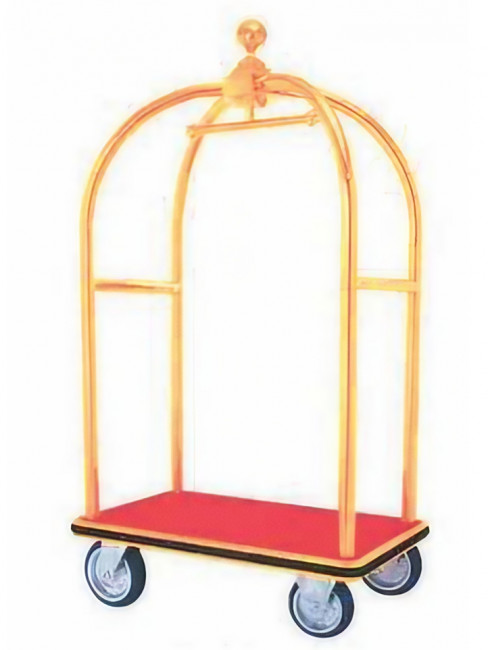 | Réf. TC :152992767 | Chariot à bagages hôtellerie | 300 | 1000 x 650 x 1900 | Acier inoxydable AISI 201 | Doré / Tapis rouge | 50 | -