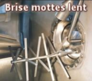 Trouver un outil pour briser les mottes en production. Agréé contact alimentaire Facilement nettoyage (pas de soudure où la poudre pourrait restée incrustée) Accrochable et léger