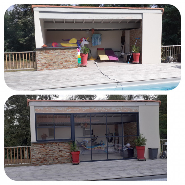 03/05/2024Fermeture d"une terrasse couverte 3 cotés pour fermé en hiver et entièrement ouverte en été: