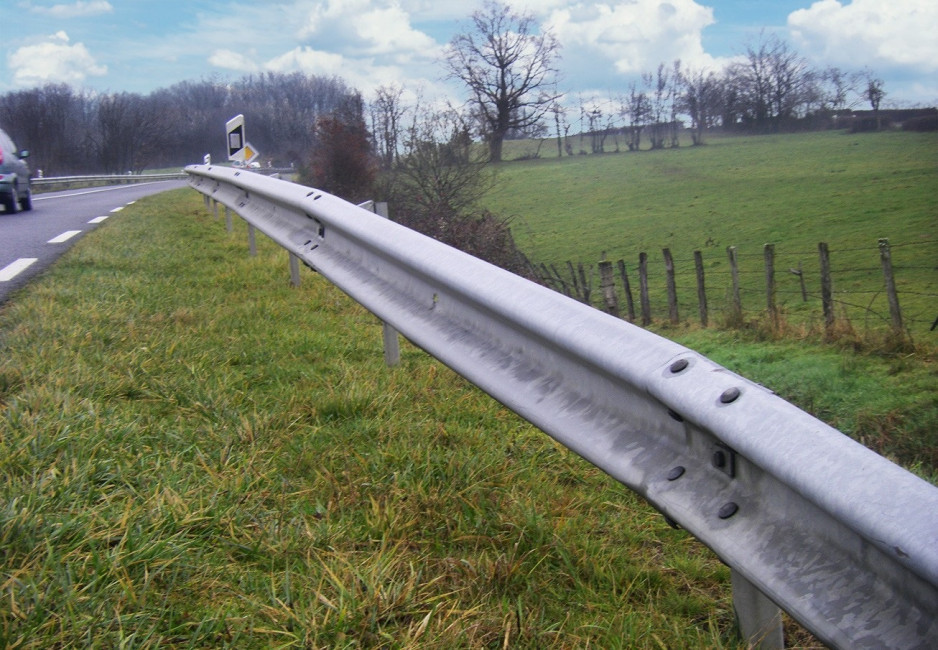 Glissière simple d'accotement de la famille GS, elle constitue la base des dispositifs de retenue latéraux sur les routes en France.
