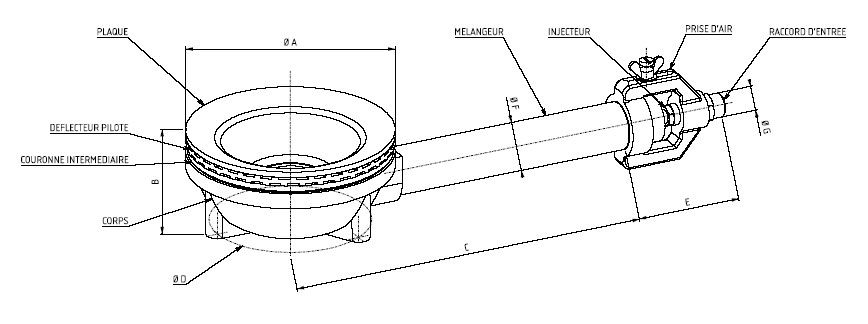 un bruleur de petit diametre (inferieur à 70cm) 45 / 50 KW