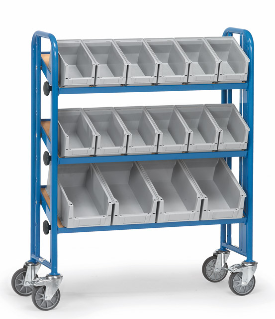 Notre chariot d'atelier à bacs plastique en mécano-soudé est un mobilier indispensable pour la mise à disposition de pièces grâce à 16 bacs en plastiques de différentes dimensions.
