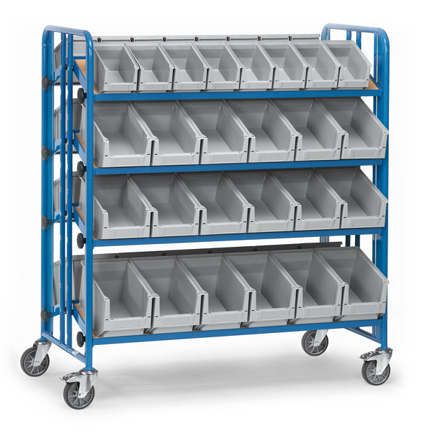 Notre chariot à bacs plastique est idéal pour la mise à disposition de pièces en atelier, il convient pour de multiples utilisations en industrie, magasins, garage mécanique etc.