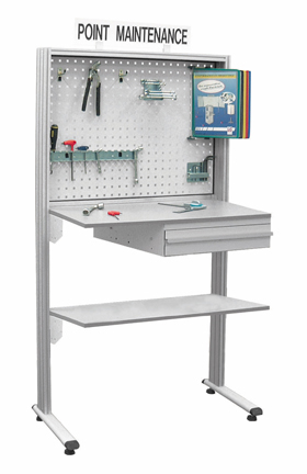 poste de maintenance en acier, protégée par une peinture époxy avec des montants en aluminium rainurés.