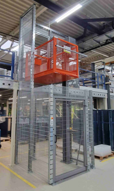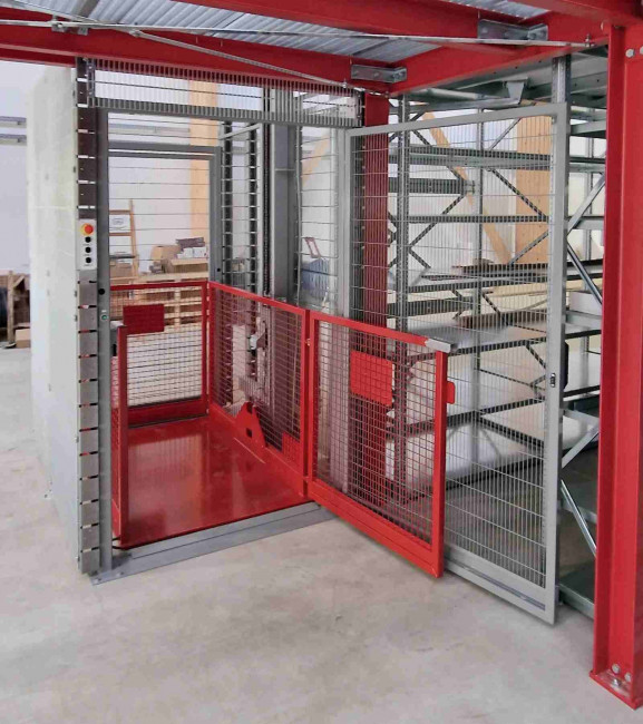 Ce monte-charge industriel à simple colonne est conçu pour le transfert vertical sécurisé de palettes et de charges lourdes.