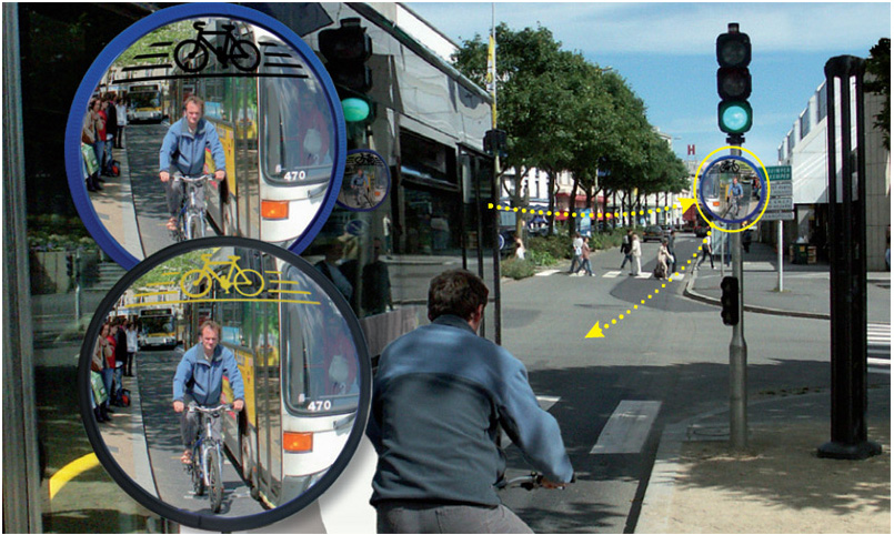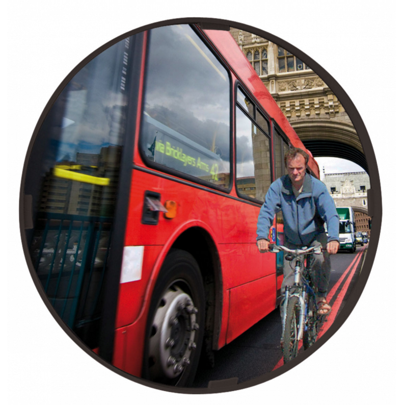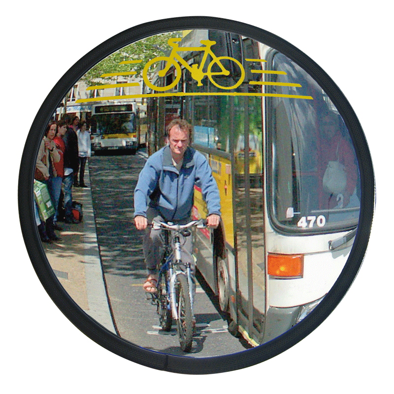 Ce miroir de sécurité Vialux permet de détecter la présence des cyclistes arrêtés à un feu tricolore.