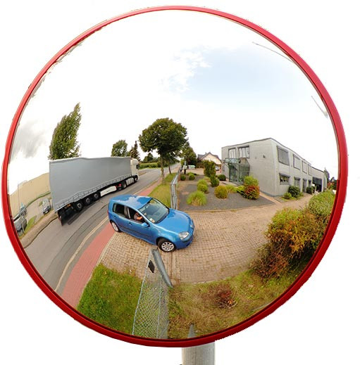 Ce miroir de sécurité routier en polycarbonate presqu’incassable (Ø 6 mm) est idéal pour améliorer la sécurité sur les routes.