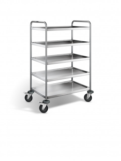 Avec ses 5 tablettes, notre chariot de service inox 5 plateaux offre un véritable gain de cadence: chargez plus, réduisez les allers-retours et stabilisez vos flux en période de pointe.
