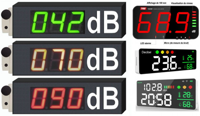 Ils peuvent aussi être utilisés aussi pour surveiller un niveau de nuisance sonore, en programmant un seuil maxi, qui déclenche un buzzer intégré et un clignotement de l'affichage en cas de dépassement de ce seuil.