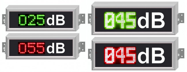 LED mono-couleur ou version tri-couleurs avec changement de couleur par programmation de seuils de dépassement du niveau sonore