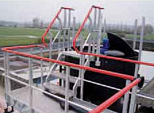 Des gardes corps et escaliers d'accès sur passerelle traversant une station de traitement des eaux, sont proposés sur-mesure, bien assemblée pour une sécurité optimale des employés.