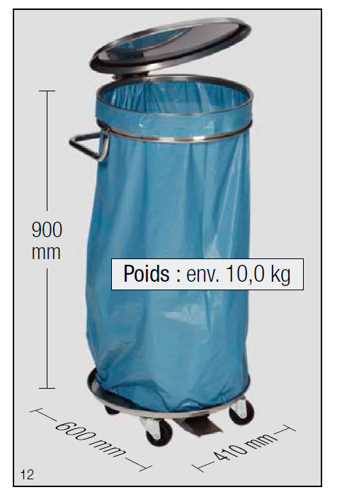 Le diamètre de 410 mm s'adapte parfaitement aux sacs standards du marché, simplifiant votre gestion des consommables.