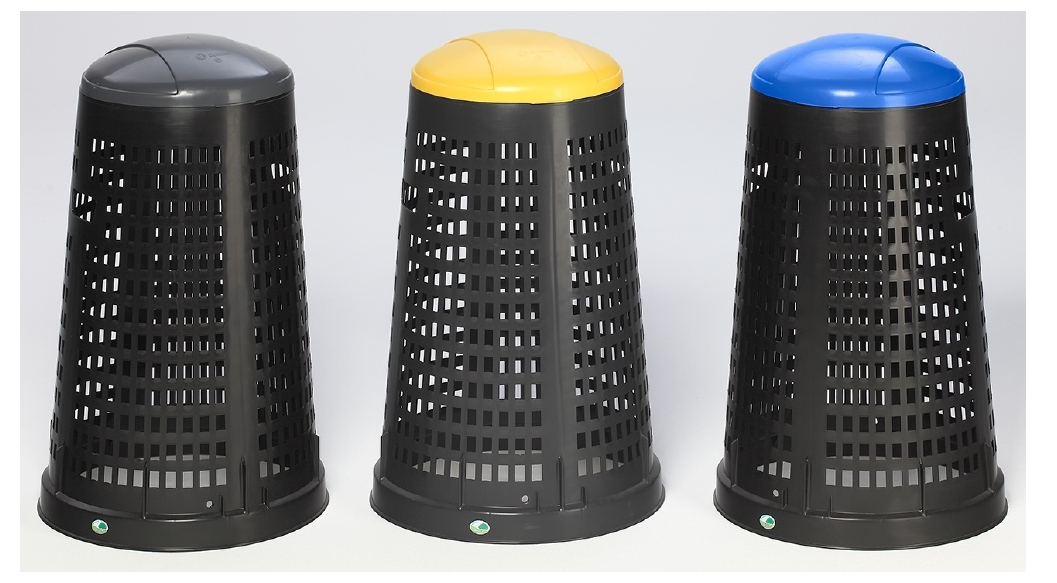 polyéthylène recyclable corps d’une couleur noire, avec couvercle en 3 coloris .