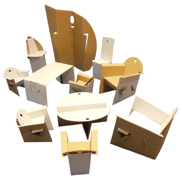 Ces cartes en carton prédécoupées sont faciles et rapides à monter et à démonter afin de constituer des meubles miniatures en carton.