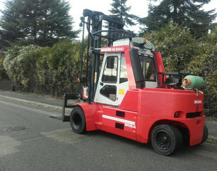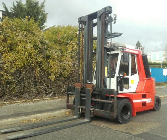 Ce chariot élévateur frontal à 4 roues convient pour manipuler sans efforts des charges jusqu'à 10 T.