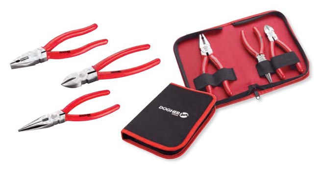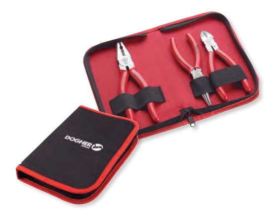 Les trois pinces sont livrées dans une trousse nylon dédiée, qui maintient chaque outil en place.