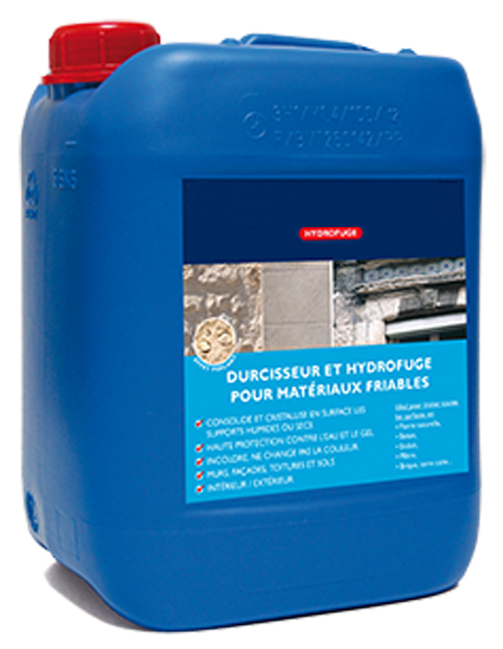Le minéralisant hydrofuge imprègne les matières poreuses, neuves ou anciennes, se cristallise et empêche la friabilité et la détérioration des matériaux neufs ou anciens par :