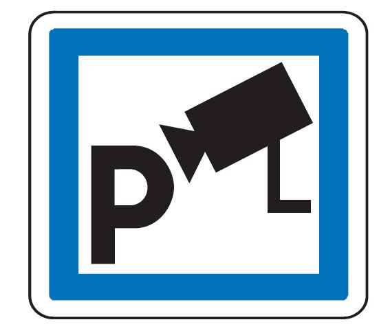 Le panneau de type CE9 est employé en France pour indiquer un parking placé sous vidéosurveillance.
