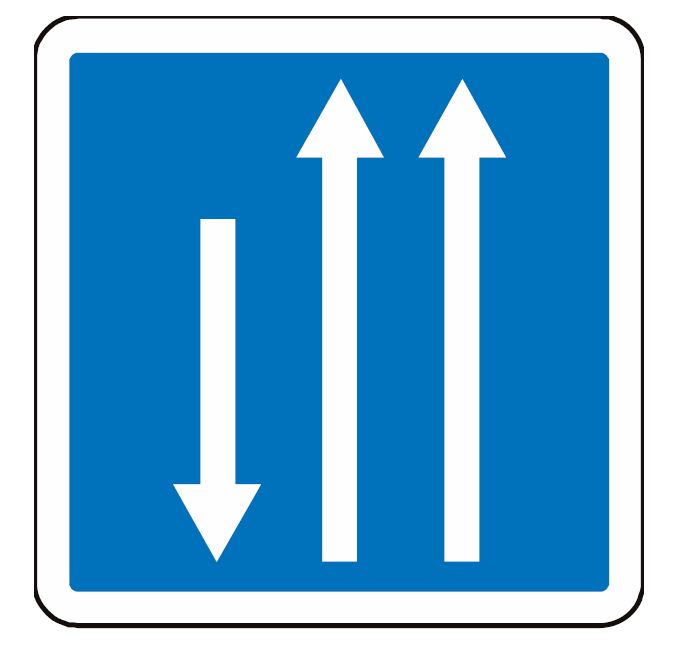 Le panneau de type C29b est employé en France pour indiquer un début de créneau de dépassement à trois voies affectées (2 voies dans un sens + une voie dans l'autre).