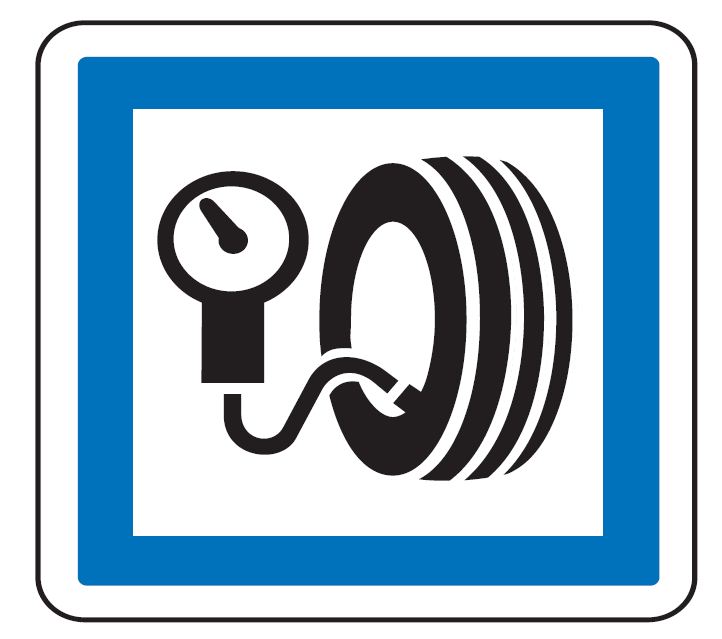 Le panneau de type CE26 est employé en France pour indiquer une station de gonflage dont l'usage est gratuit, située sur autoroutes et routes à chaussées séparées, et en dehors d'une station service.