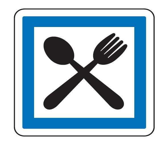 Ce panneau de type CE16, fabriqué en France, permet d’indiquer un restaurant offrant un service à table situé sur une aire de service d'autoroute ou de routes à chaussées séparées sans accès riverain.