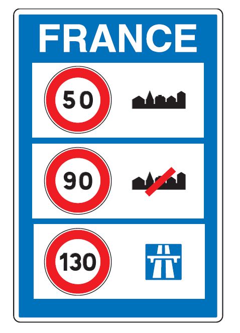 Le panneau de type C25a est employé en France pour indiquer, aux entrées sur le territoire français, la signalisation des limitations générale de vitesse en vigueur.
