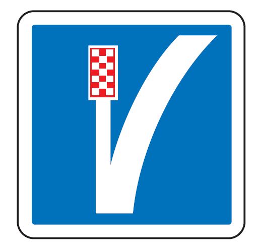 Ce panneau de type C26a, fabriqué en France, permet d'indiquer une voie de détresse à droite.