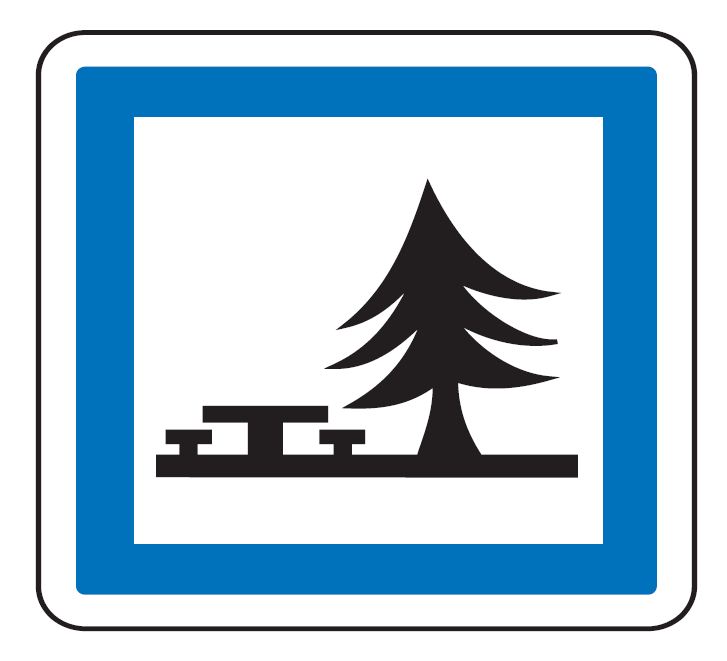 Le panneau de type CE7 est conçu pour indiquer un emplacement de pique-nique aménagé, comportant des tables, des bancs, des poubelles, des cheminements aménagés pour piétons et des zones ombragées.