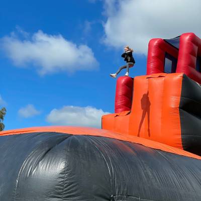 Ce jeu gonflable à sensations fortes est strictement destiné aux participants âgés de 14 ans minimum. Ce positionnement vous permet de cibler un public capable d’apprécier pleinement la hauteur, la vitesse et l’intensité de l’expérience.