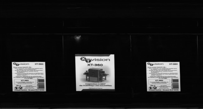 Elle est équipée de 2 rouleaux qui mettent en rotation le produit devant la caméra. Elle est donc spécialement adaptée aux bouteilles cylindriques.
