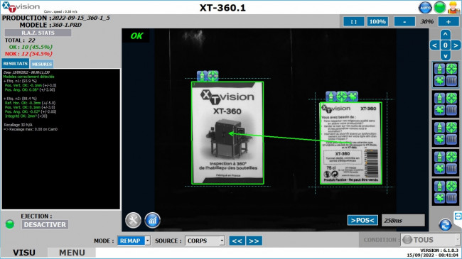 Les images capturées s'affichent sur un panel PC qui permet d'ajuster les points de contrôles et de visualiser la production.