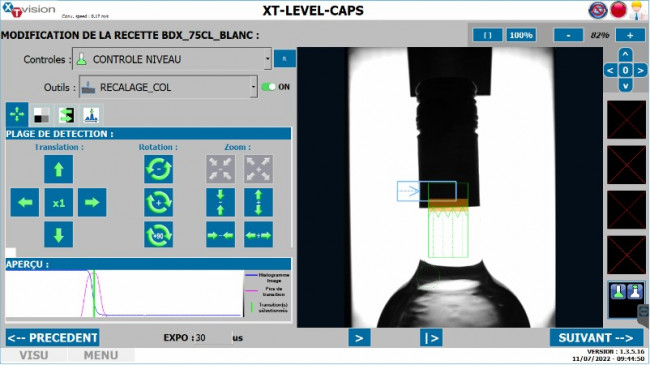 Il est également possible d'éjecter les bouteilles en défauts, voir un arrêt de ligne en cas de défauts consécutifs.