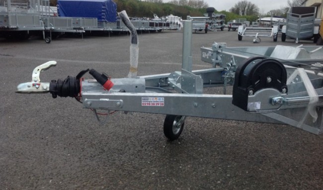 Son châssis est composé d’éléments en acier galvanisé assemblés par boulonnerie ce qui renforce la solidité de la remorque .