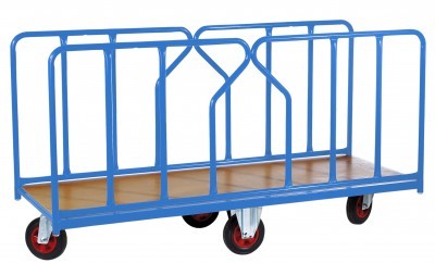 Notre chariot de manutention pour charges longues est équipé de ridelles de maintien amovibles permettant de l'utiliser comme plateforme simple de grandes dimensions.