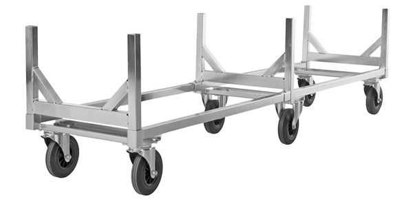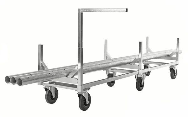 Pour la manutention de charges longues dans un entrepôt ou un site industriel tout en évitant leur chute, nous avons développé un chariot spécifiquement dédié pour le transport de ce type de charges pouvant recevoir jusqu'à 800Kg de capacité.