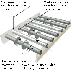 - Composé de deux tambours moteurs et de cinq rouleaux gravitaires.